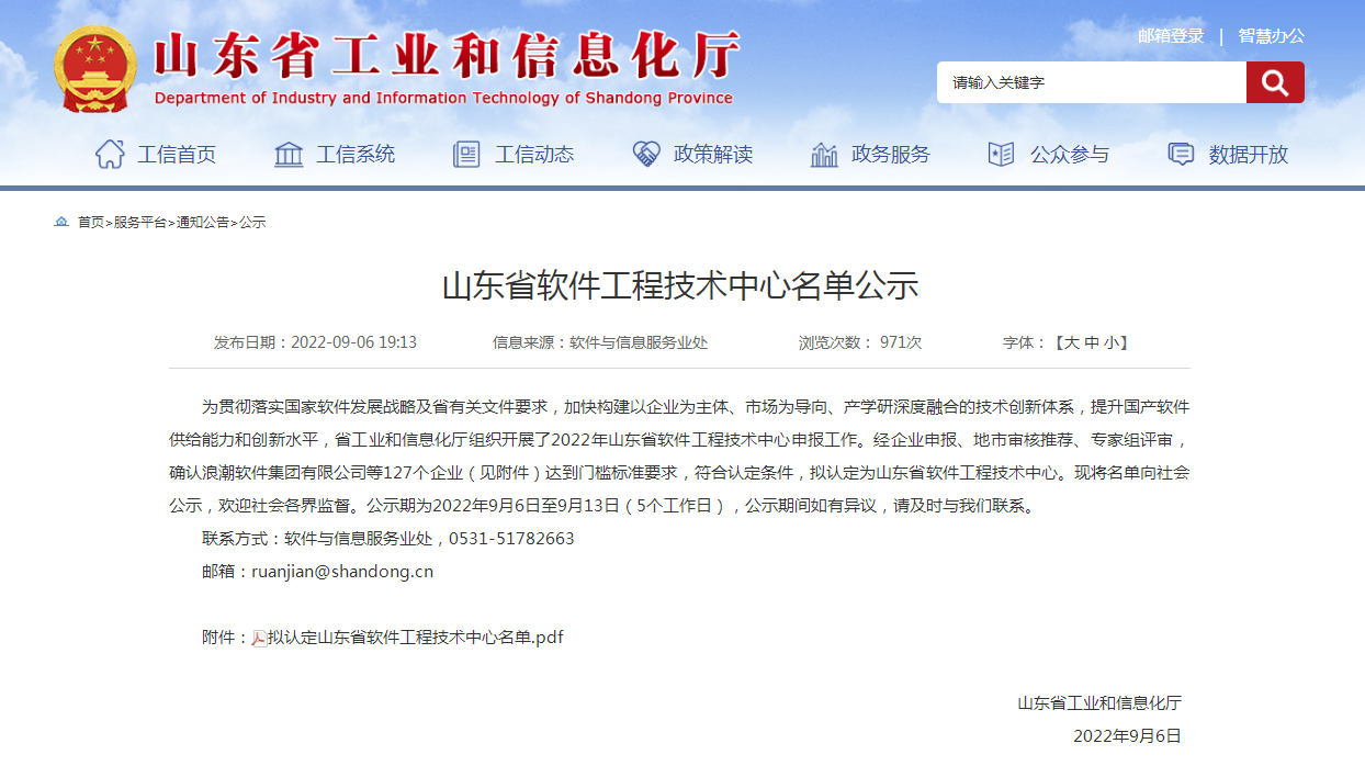 近日,山東省工業和信息化廳發布《關于公布2022年山東省軟件工程技術中心名單》,和遠智能榜上有名,成功入選。
