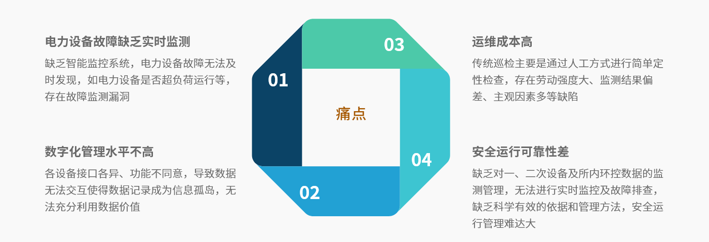地鐵電力運維管理系統采用電力監控、電氣安全、電能質量、用能管理、視頻監控、輔助監控、資產管理等一體化功能設計,實現對地鐵變配電所的全方位監管,具備遙測、遙信、遙控、SOE事件記錄、故障錄波、遠程整定參數等功能,對電力運行狀態實時采集及監視,全數據分析判斷,預案處理;集成運行維護管理、資產管理、環境監控、門禁監控、煙感監控、視頻監控等功能;用戶可通過后臺系統實時掌握變配電所整體運行狀況、獲取各類預警、報警事件,滿足電力無人或少人值守的需求,為用戶提供有效的專業技術保障及運維支撐,提高系統安全運行水平。