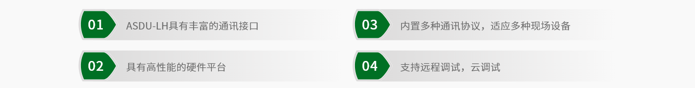 ASDU-LH具有多路獨立以太網接口,多路隔離RS485接口,多路隔離CAN接口,GPS/北斗雙模衛星接收機,WIFI通訊功能,支持RS232與OTG-USB設備調試。支持數據存儲和數據管理,內置多種國際、國內頒布的通信規約及其它設備終端生產廠家的私有通信規約,支持協議定制開發,提供配置軟件進行快速配置與數據和協議管理。